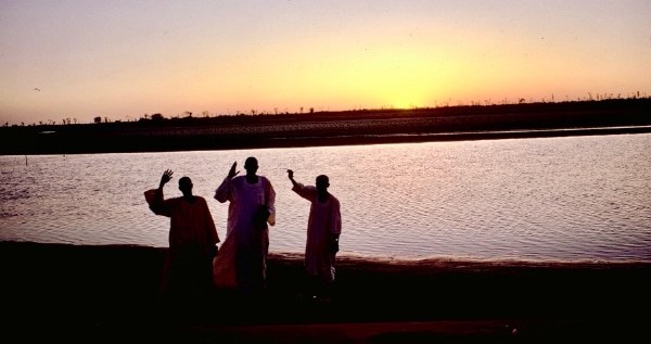 I had intended to go to Sedon to photograph the water pumps, but the teachers of Kinedra would not let me leave. They insisted I accompany them to the river bank to take pictures. Waded in the river. They said prayers. Each had orange-sized patch of sand on forehead. Then visits to the village shops, and the home of . . . . . . brother who has refrigerator. Little bags of flavoured ice. Shabby furniture, not worthy of Austin’s [a popular London warehouse of used furniture.]