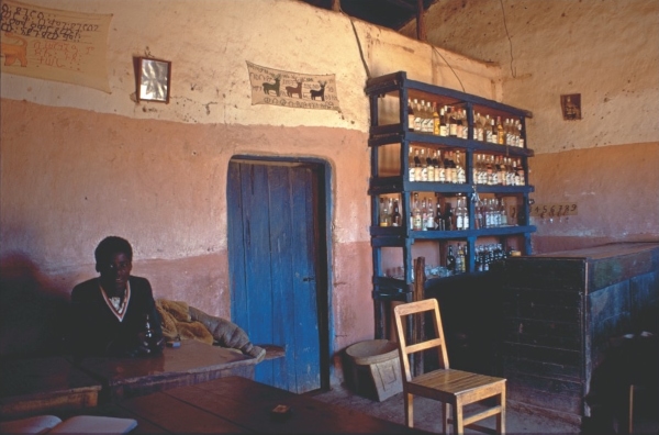 Eventually we arrived at the New Bar on the Kenya side. Guiness ads, English signs everywhere, big bottles of beer, and noisy convivial atmosphere produce a pleasant illusion of friendliness and intimacy, rather pub like. It is a bit of an illusion though, and falls flat, just as the first impression in Metema [the border town of Ethiopia] led to disappointment. Presumably, after a hard ride, uncertain of what awaits me I have only to be given the merest token customary comfort – i.e. a beer, and a seat, and a little space in which to speak or listen – and I complete the rest of the picture in my imagination. There are enough people here anxious to imitate Western styles to provide a backdrop for this fancy, as banal as the Embassy [cigarette] advertisements used for ‘art pieces’ on the walls.
