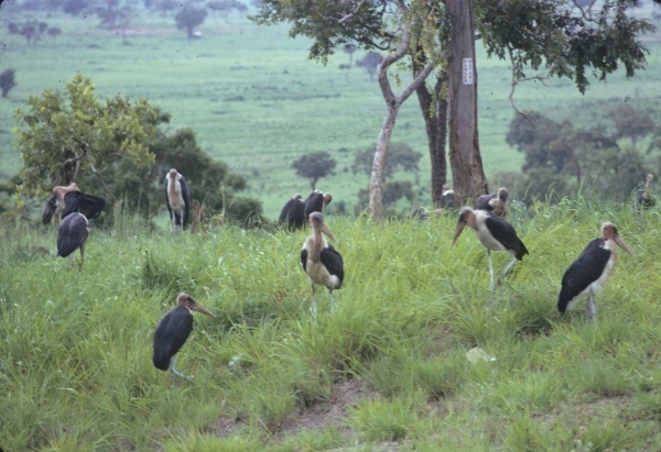 Maribou storks assembled outside the Mikumi Lodge, Tanzania