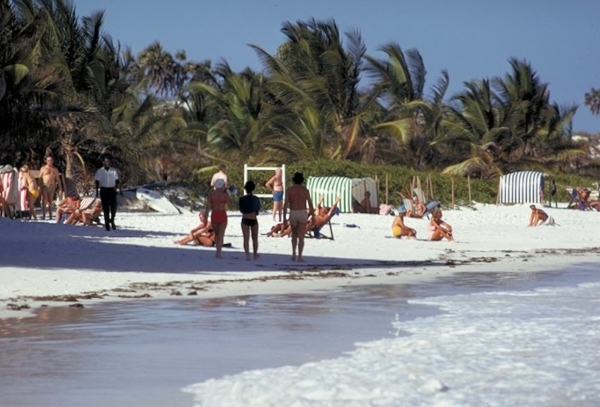 The beach at Mombasa Beach Hotel. White sand. English, Italian holiday makers.