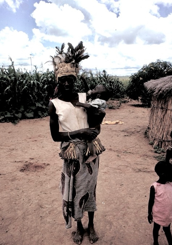Zambian family compound near Chikankata. Tonga (or Tonka) tribe. Six huts – plus maize store and chicken house. All basic ploughing machinery and oxen to draw it. Husband was away at court. Three wives, two of them had six children each.