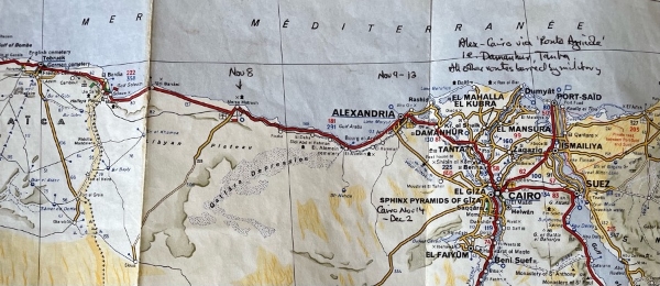 Against the odds I’ve got through to Egypt, and in Alexandria put myself though a crash course in engine repairs. But there were papers I wanted, still coming to Benghazi from the Sunday Times. The owner of the garage was going to Benghazi and said he would get them for me.
