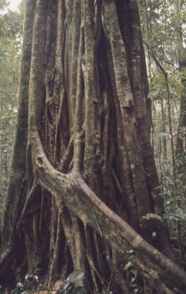 Seen in Chirinda Forest: Bright red millipedes on rotten wood, three inches long. Small monkey in treetops, and a red squirrel. Trees whose roots seem to intertwine to form the trunk, only merging together at a considerable height, say 60ft or more, relatively close to the canopy. The Big Tree, red mahogany, 200 ft high they say. A liana twisting up full height of the forest. Heard deep “Chuk-chuk” sound. Monkey or bird? Bottle bird which holds same pitch.